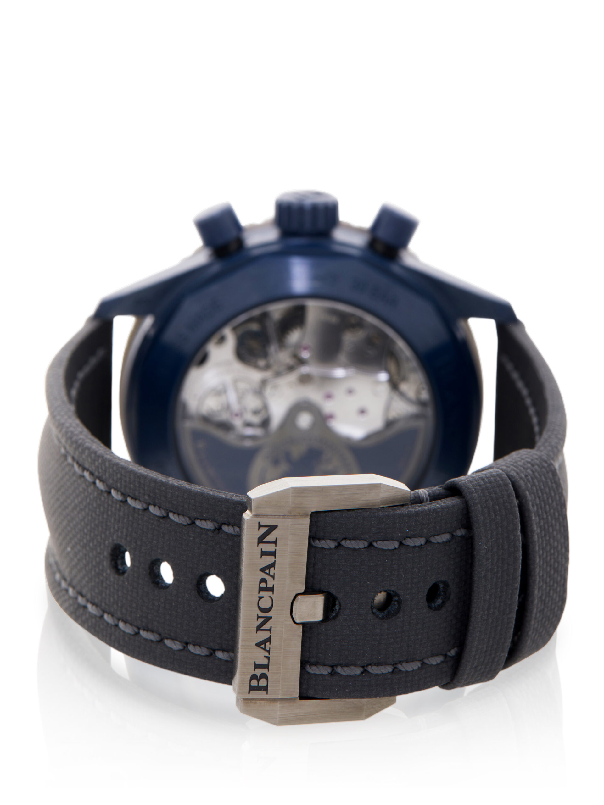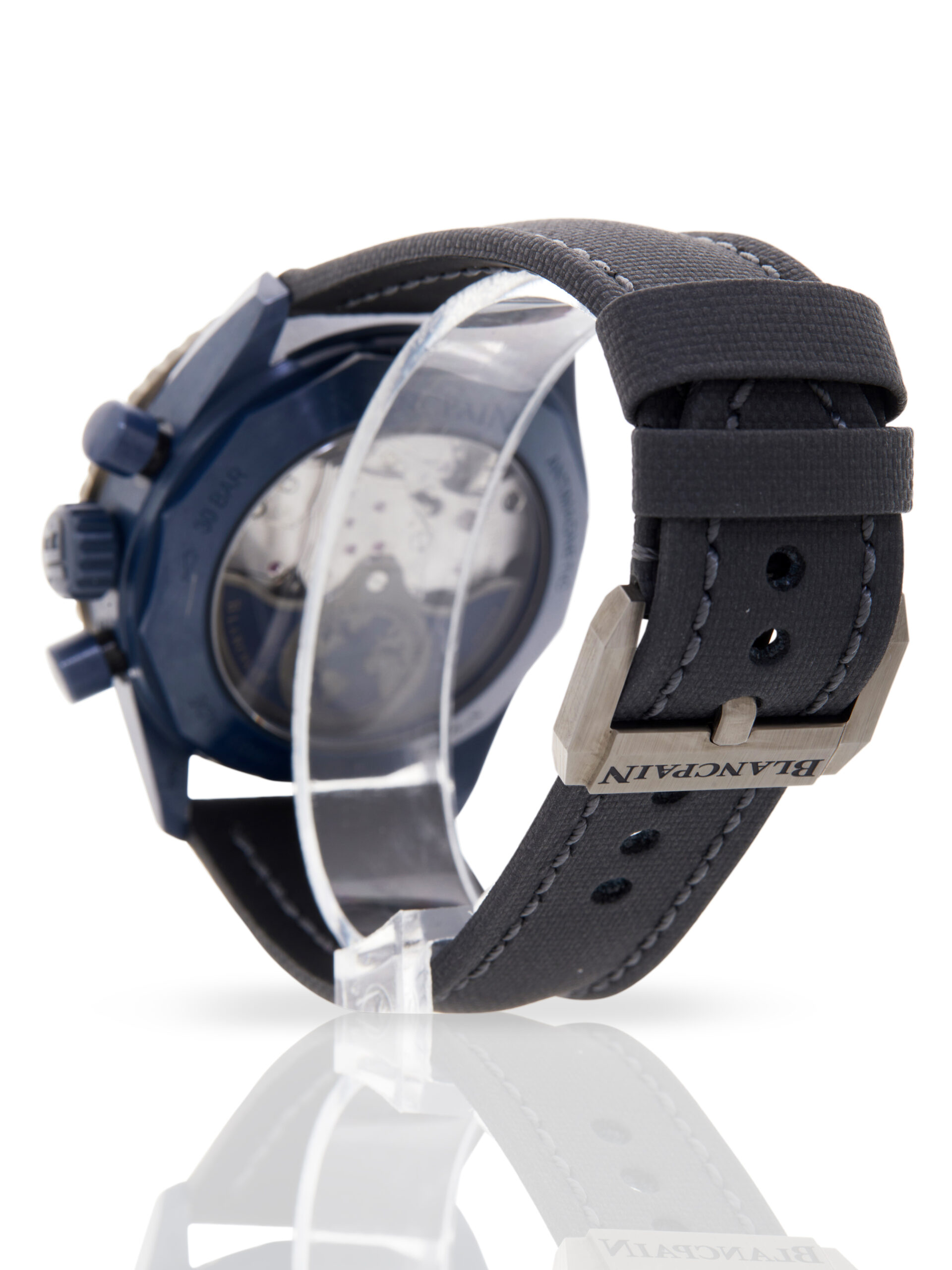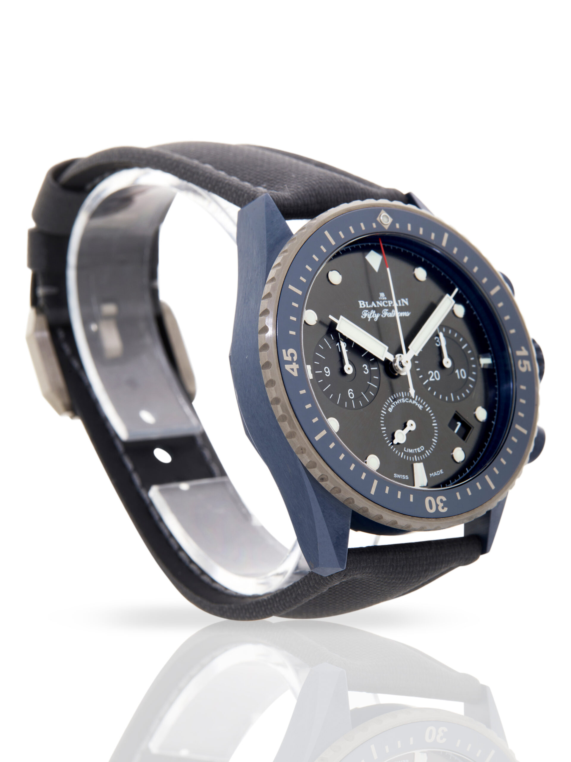Presented in fantastic condition is this interesting example of a 2018 Blancpain Fifty Fathoms Bathyscaphe 5200-0310-G52A, limited to just 250 pieces. The watch features a 44mm blue ceramic case, grey chronograph dial, titanium bezel with blue ceramic blue insert and is coupled to a brand new, grey textile strap with a folding clasp. Having received a full service by our watchmakers, it’s deemed to be running perfectly and is showing only minor signs of wear.