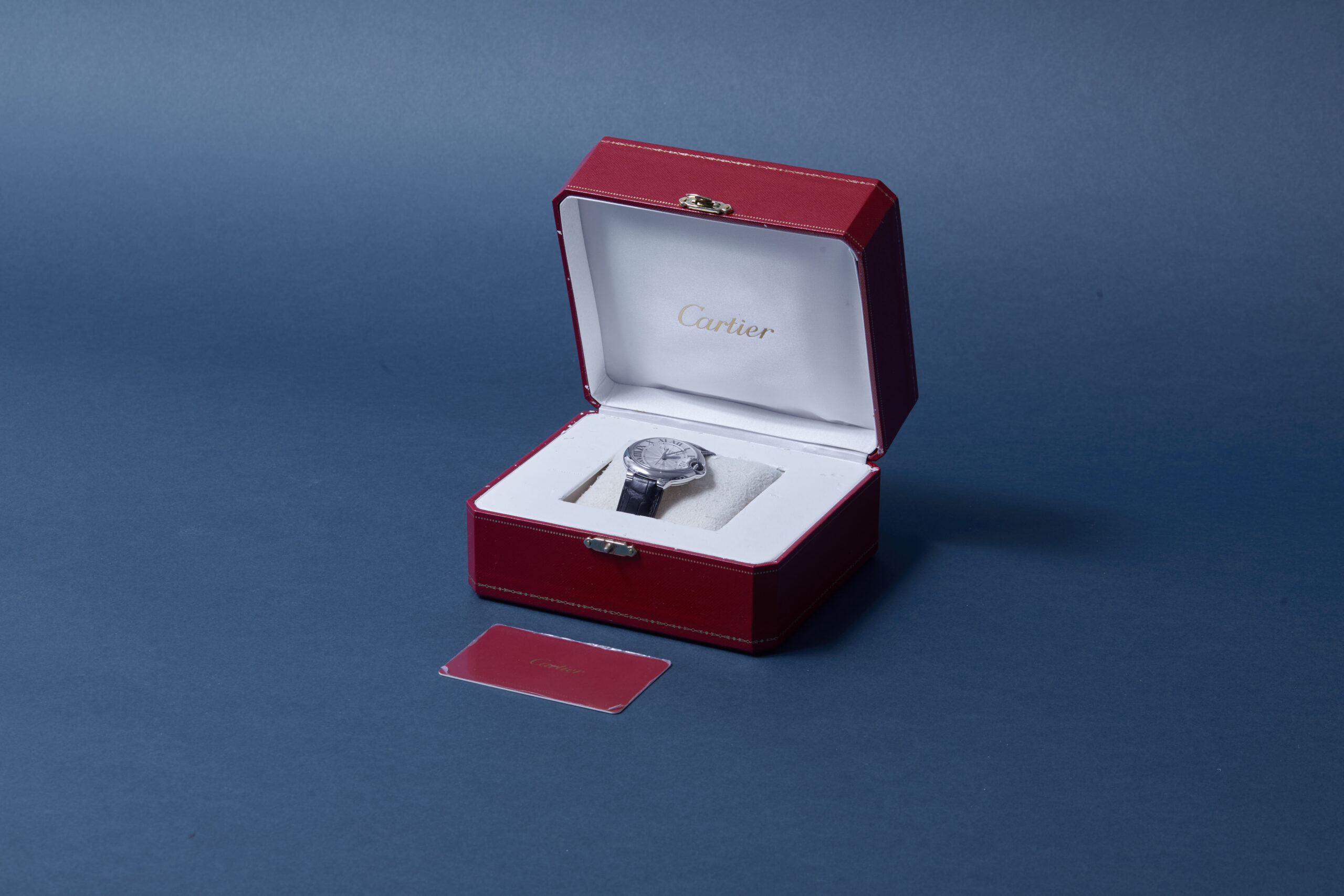 The watch is supplied with a Cartier box and warranty card dated Q1 2019.