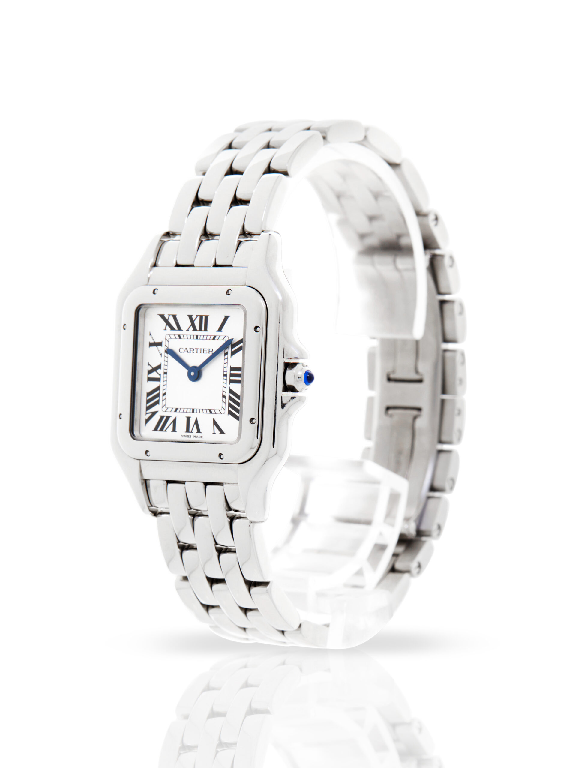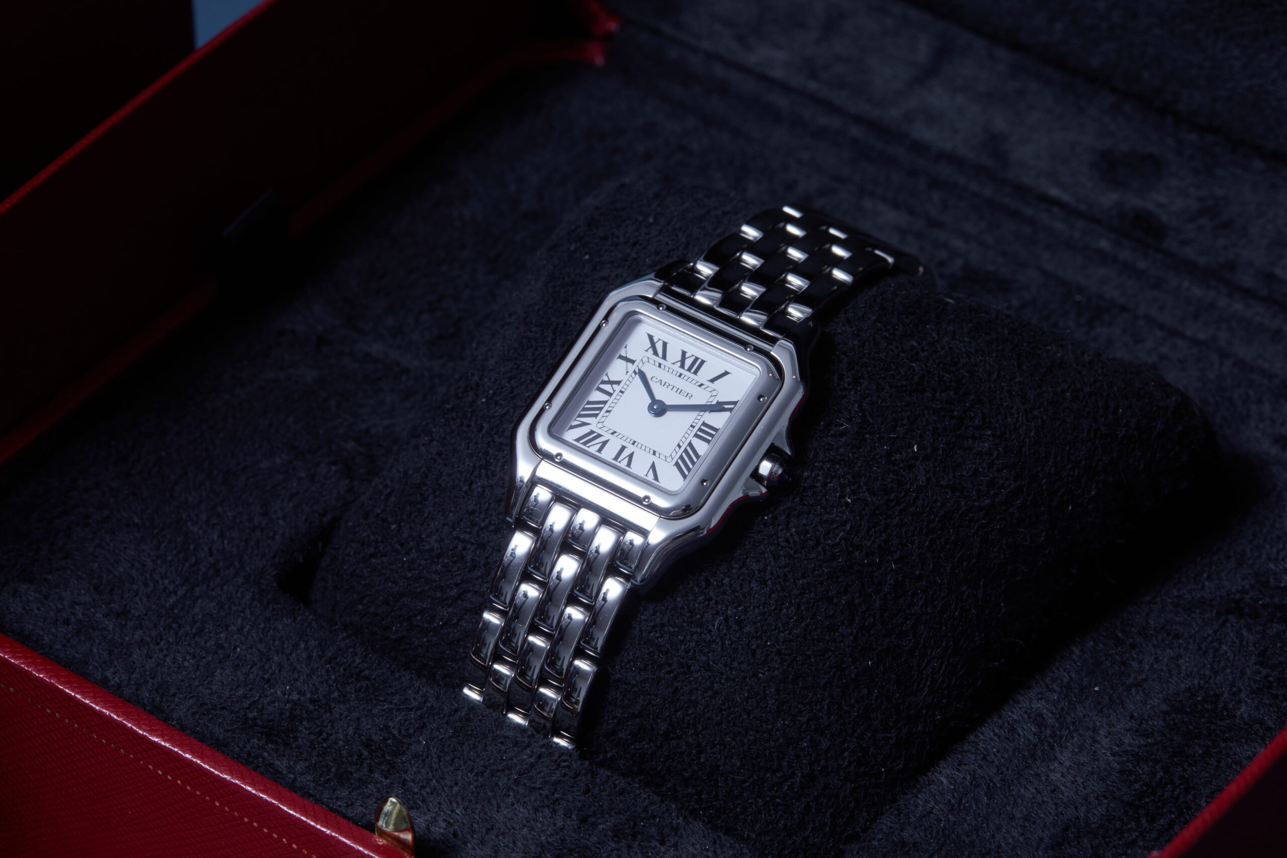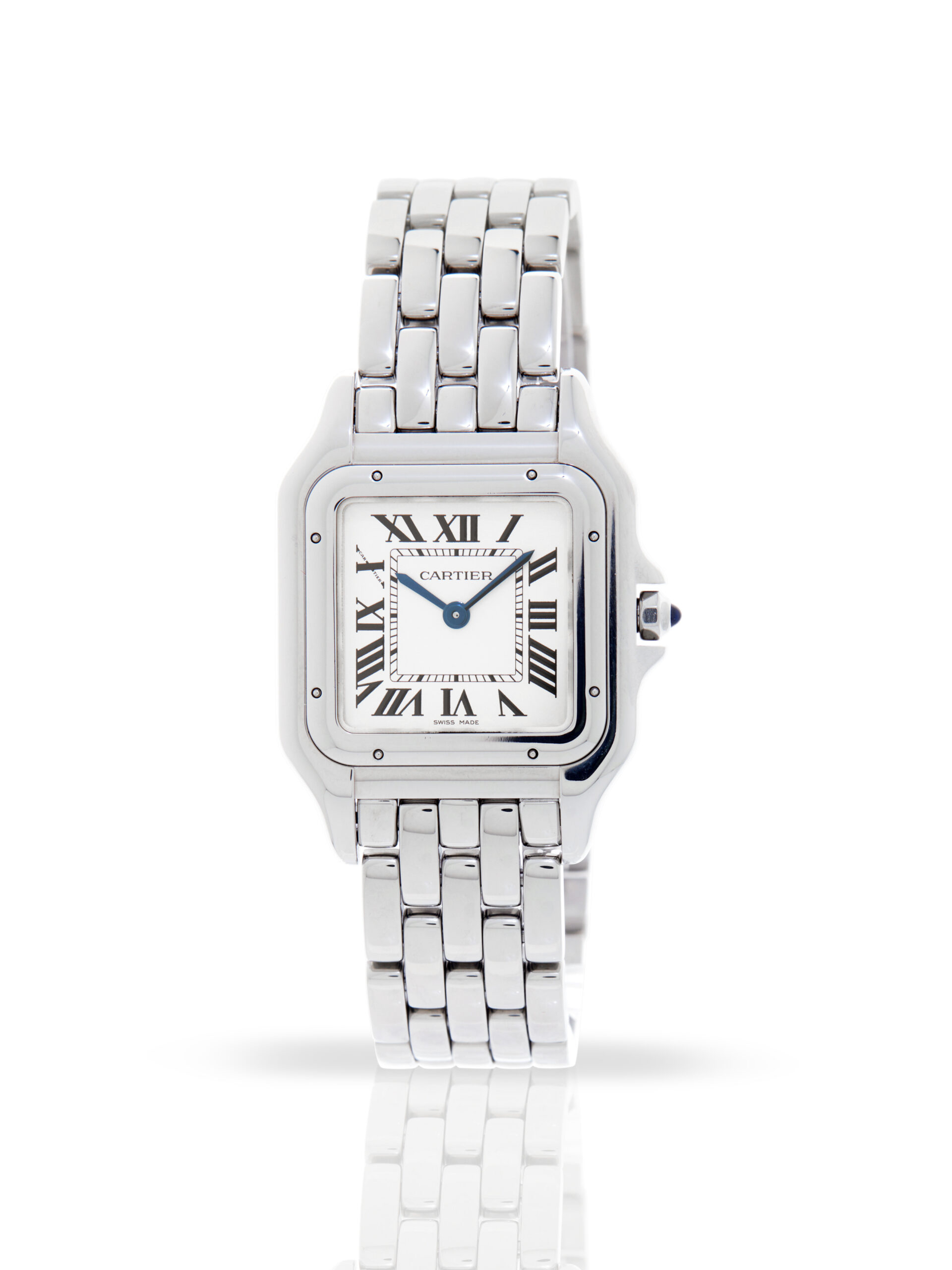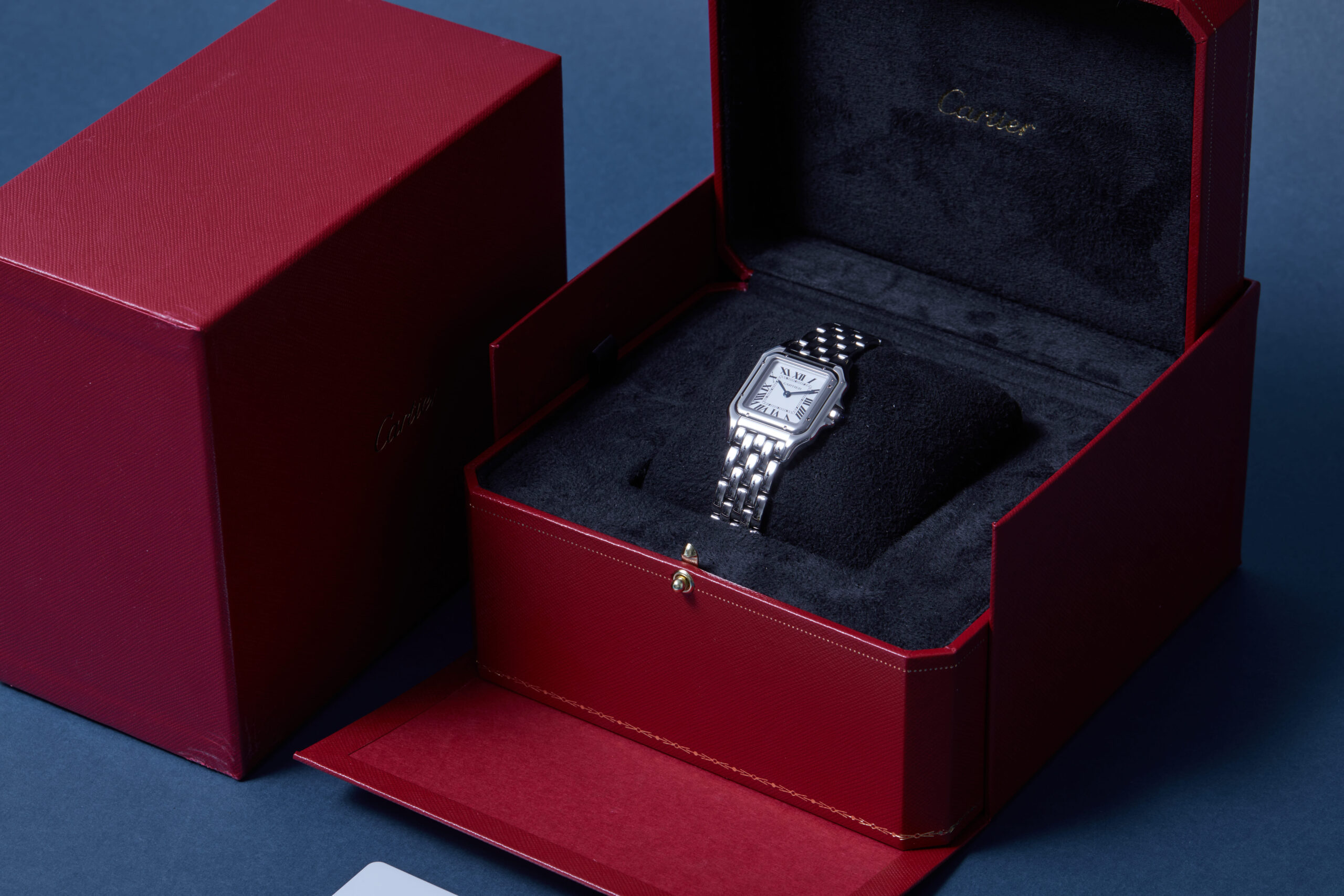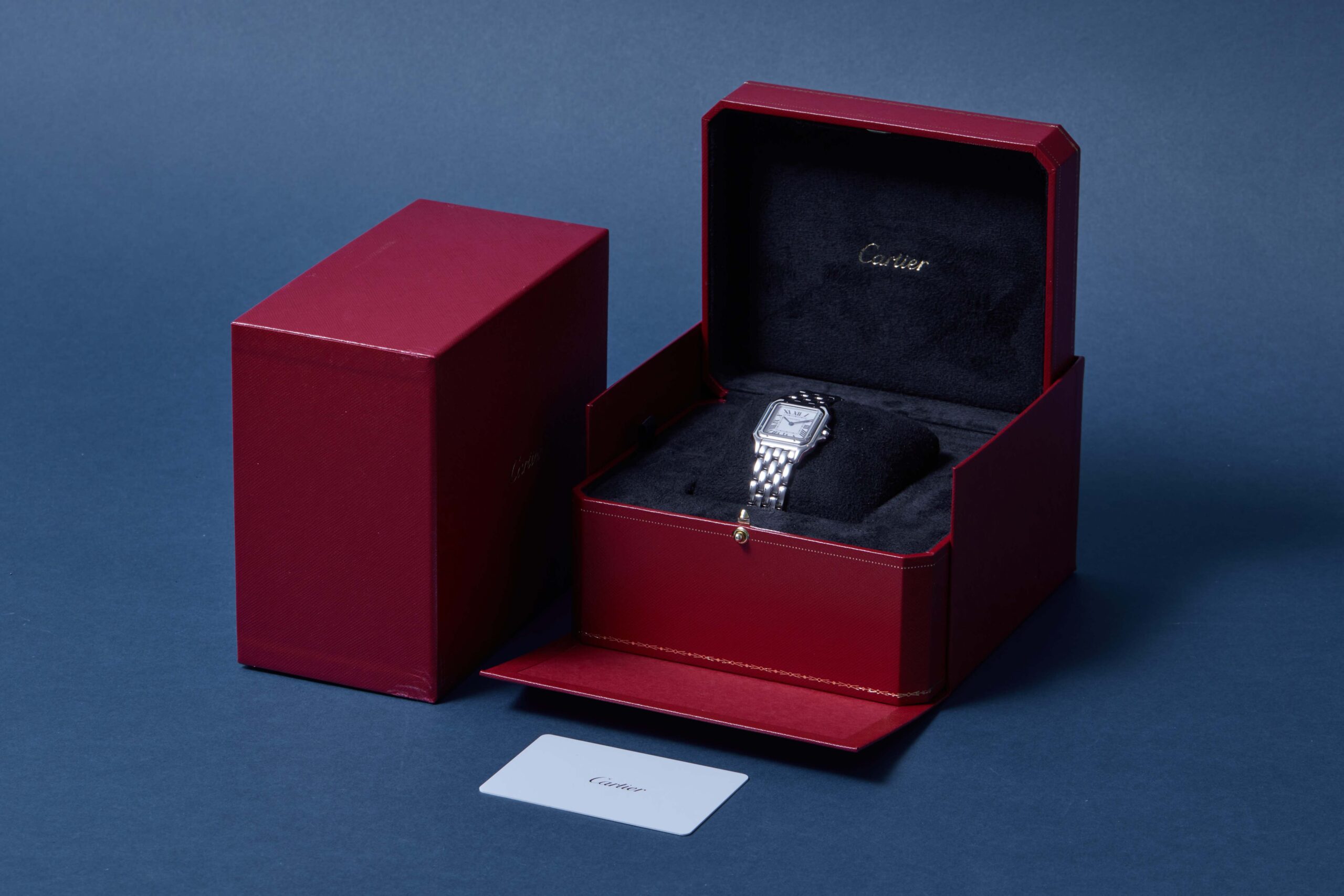 Presented in excellent condition is this lovely example of a 2024 Cartier Panthere WSPN007. The watch features a 27 x 37mm stainless steel case, silver dial with black Roman numerals and is coupled to a stainless steel bracelet with a double folding clasp. Having been professionally tested for condition, it’s deemed to be running perfectly, ready for its new, lucky owner.