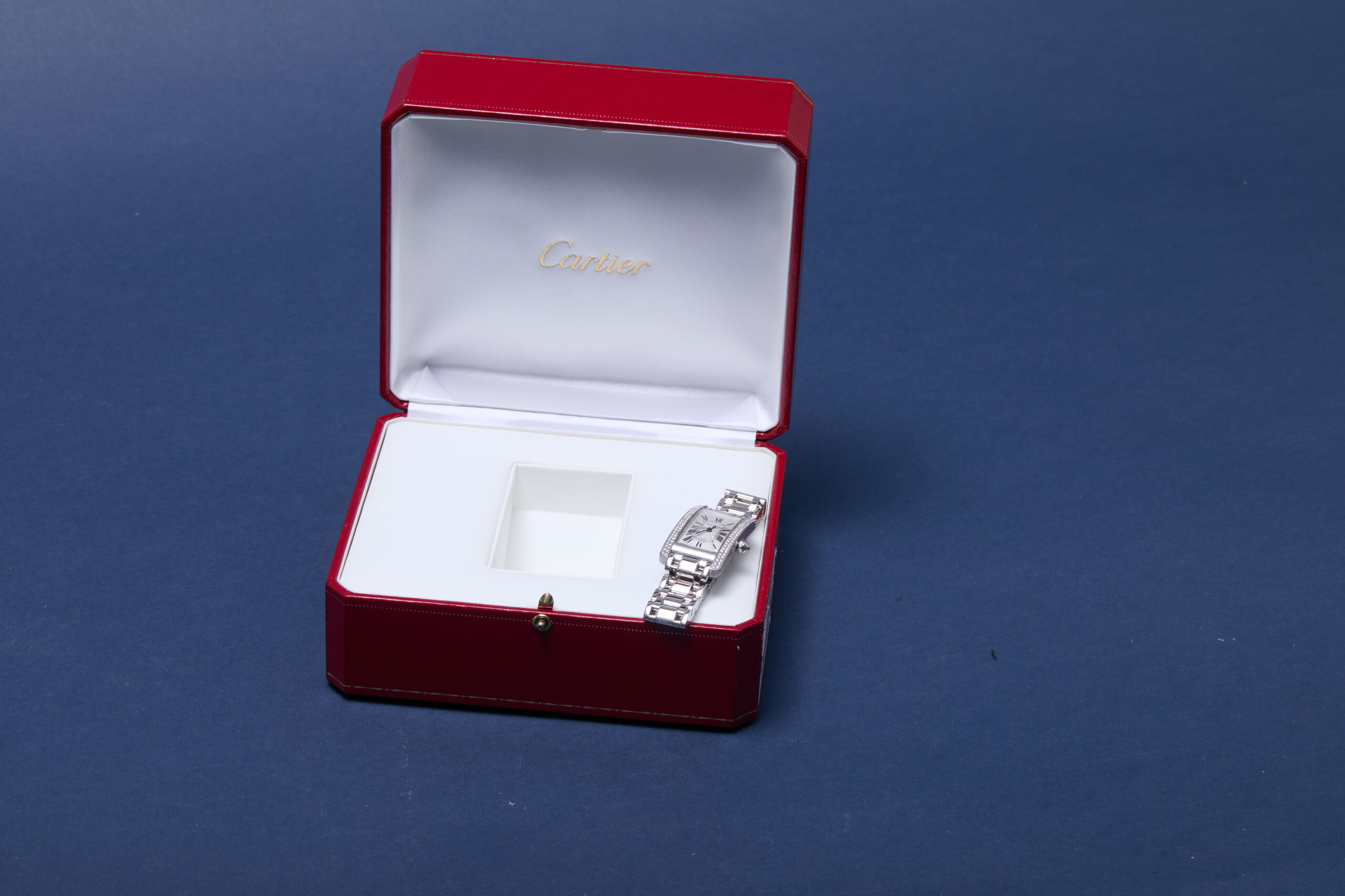 The watch is supplied with a Cartier box (interior cushion missing) ONLY and is NOT accompanied by its original papers.