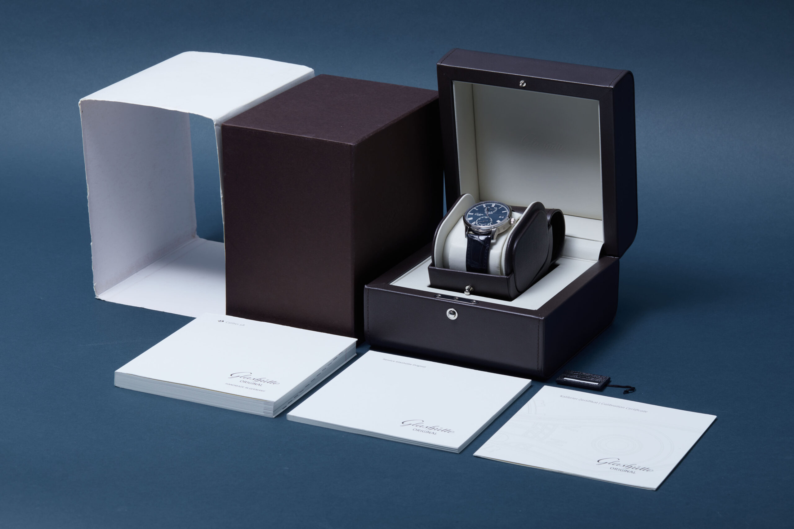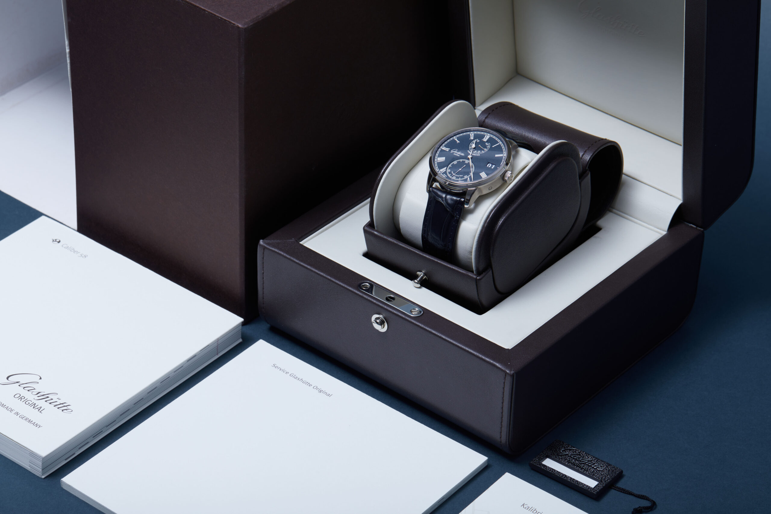 The watch is supplied with its original presentation box, travel case, swing tag, manual booklet, service book and warranty certificate dated Q3 2022.