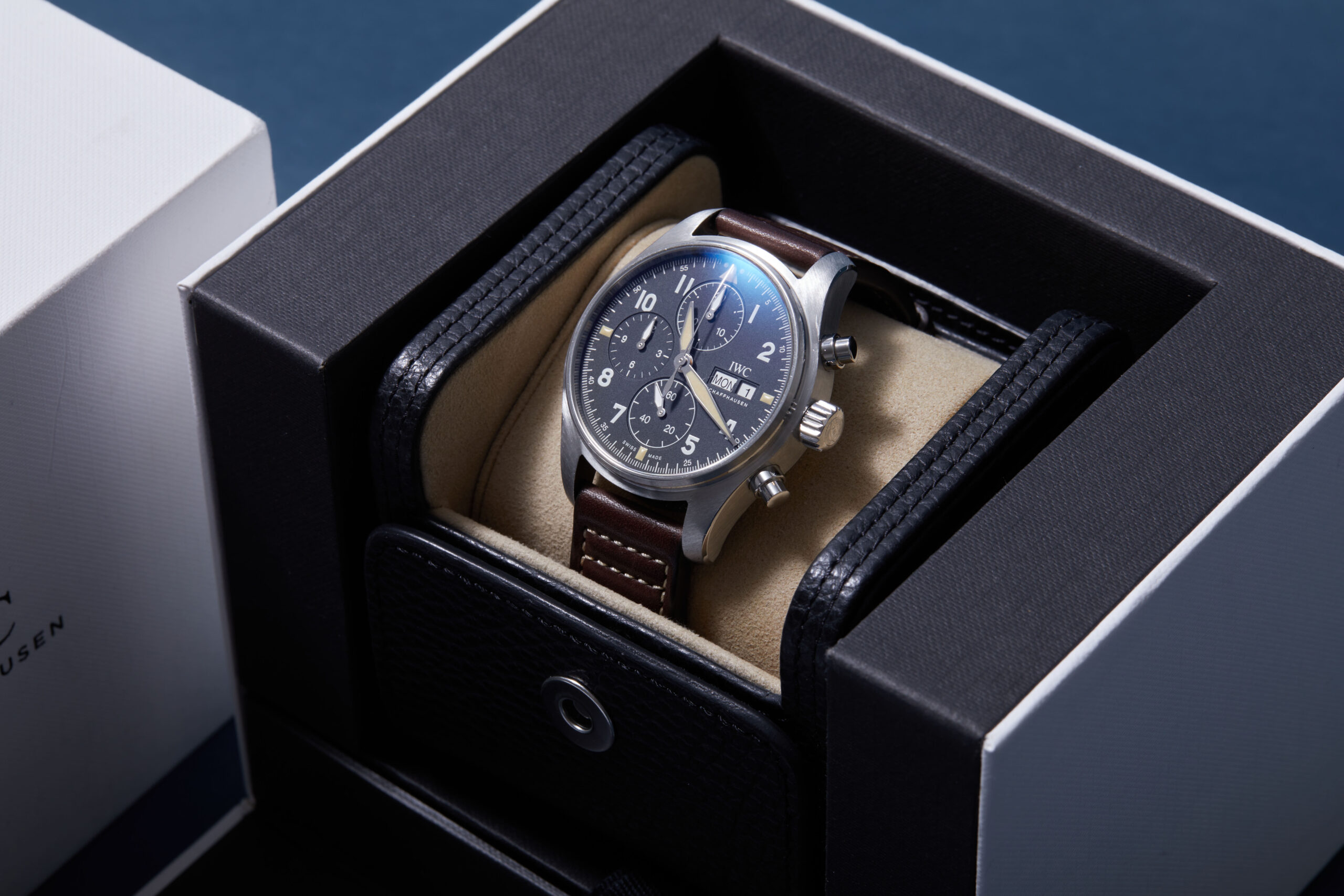 The watch is supplied with its original IWC box, manual booklet, polishing cloth, service booklet and warranty card dated Q3 2020.