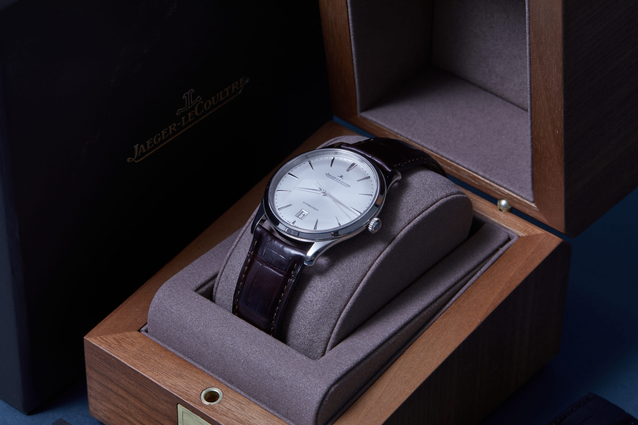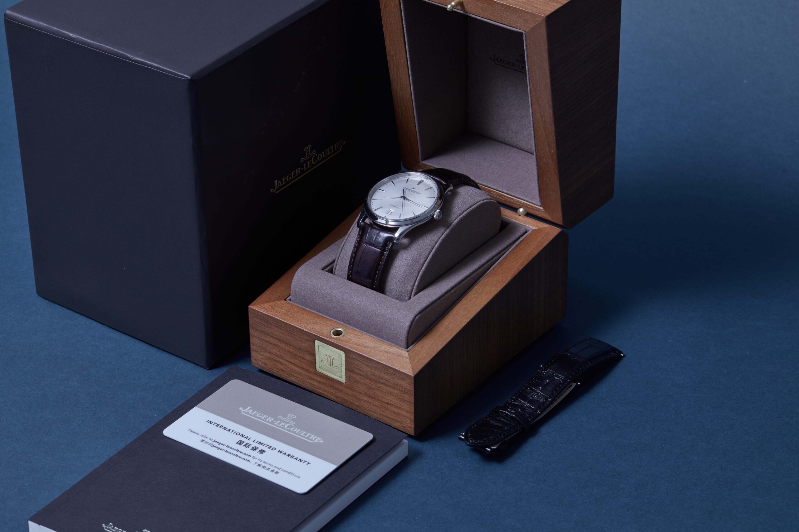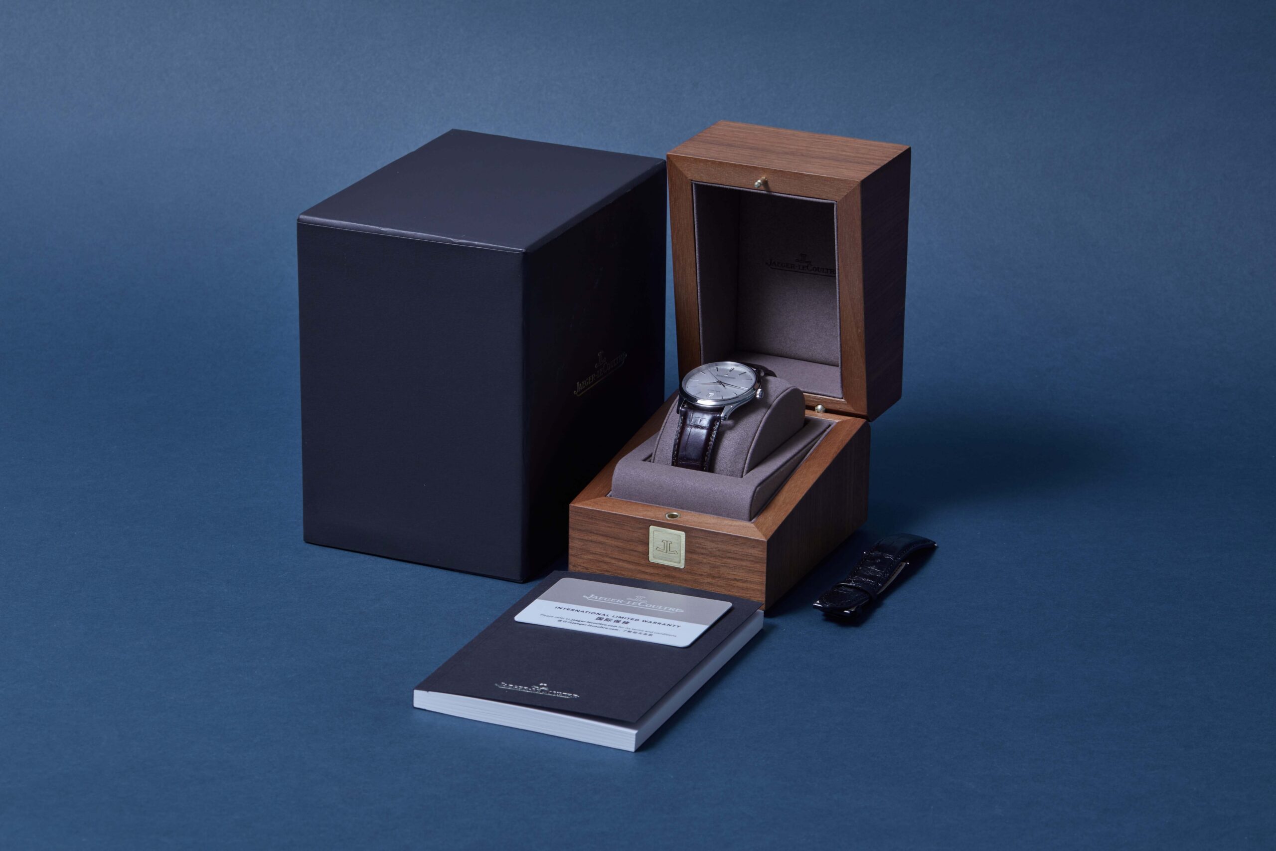 The watch is supplied with its original JLC box, manual booklet, spare strap and warranty card.