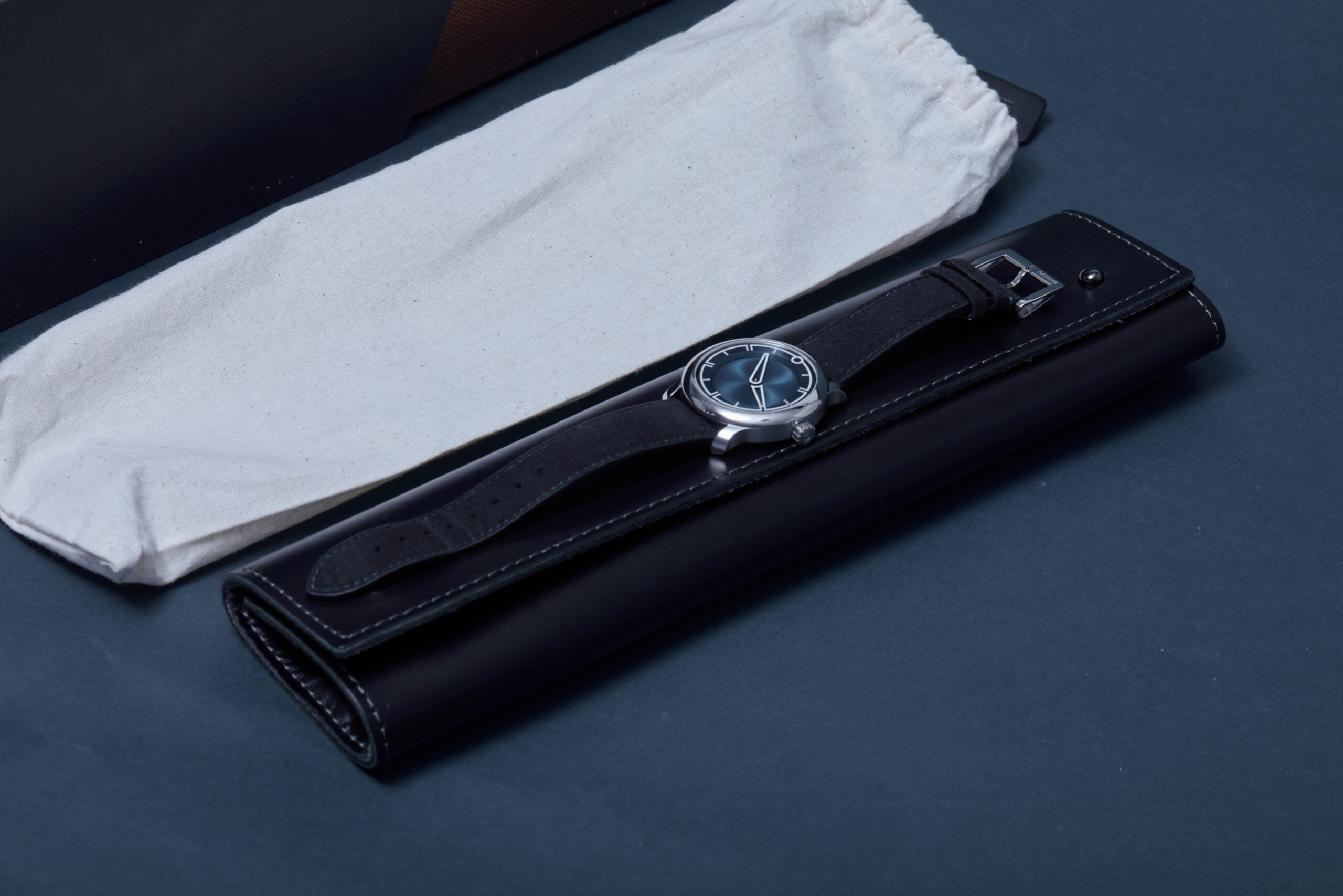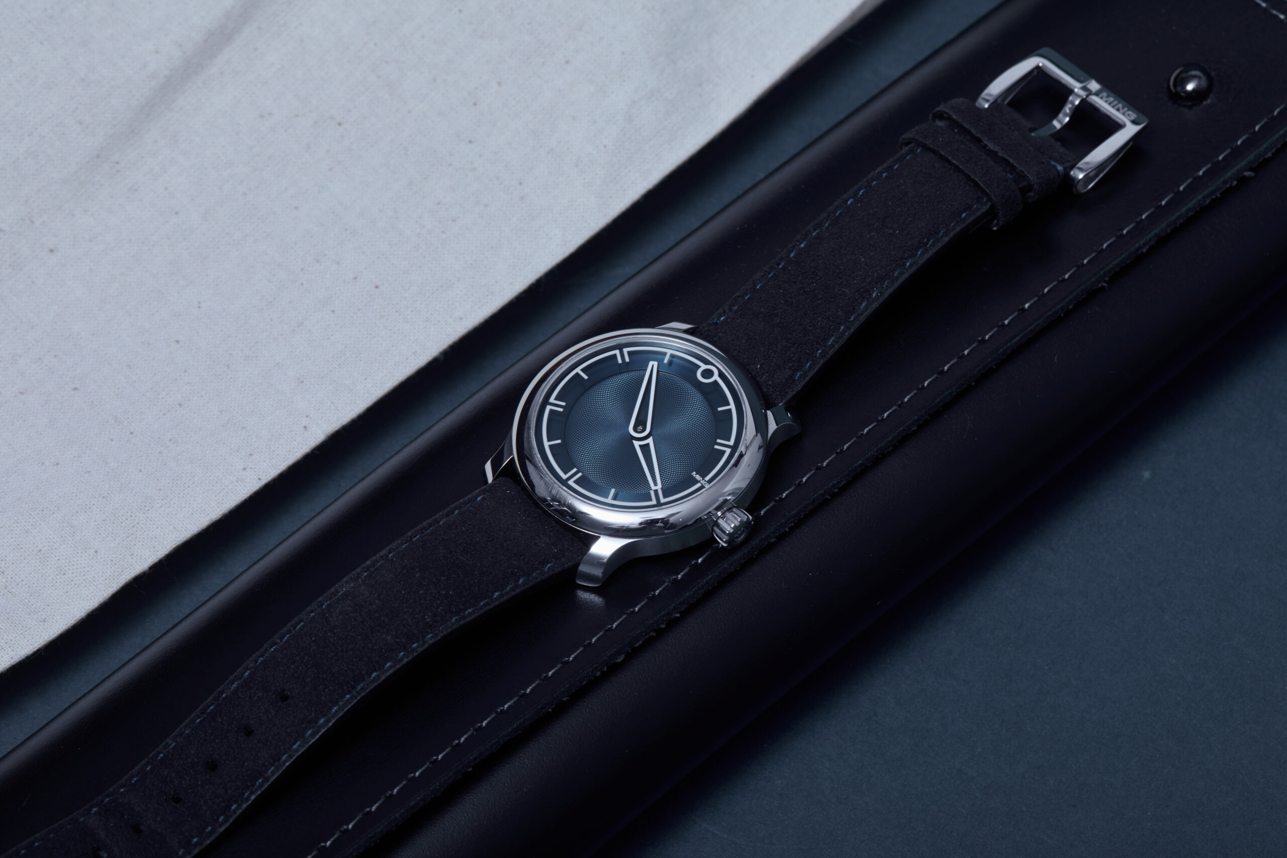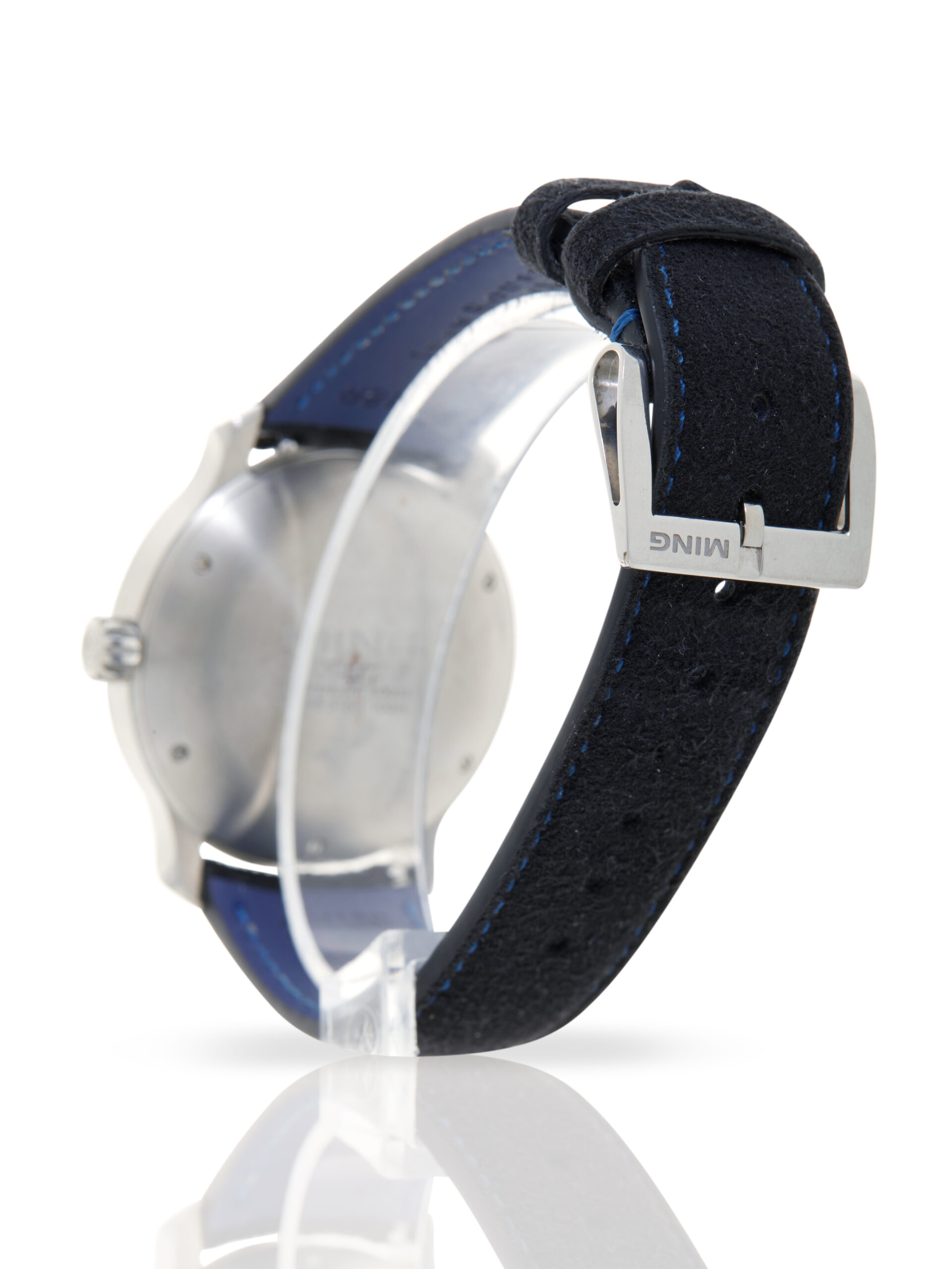 Presented in excellent condition is this beautiful example of a 2022 Ming 17.09. The watch features a 38mm stainless steel case, blue dial with Clous de Paris, lume filled indices and is coupled to a leather strap with a blue Alcantara lining and a pin buckle. Having been professionally tested for condition and accuracy, it’s deemed to be running perfectly and is showing only very limited signs of wear.