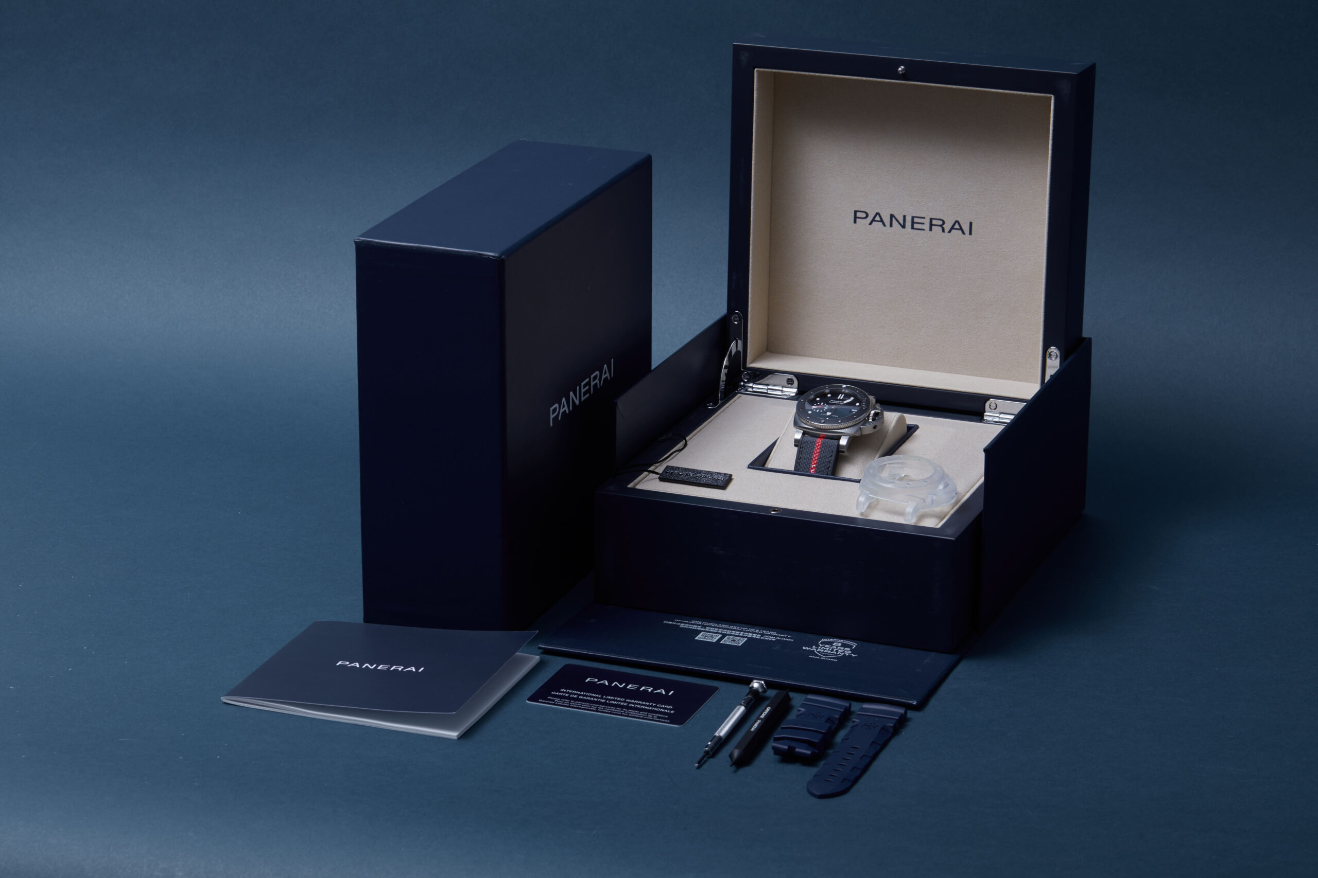 The watch is supplied with its original Panerai box, case protector, swing tag, booklet, spare rubber strap, screwdriver and warranty card dated Q2 2024.
