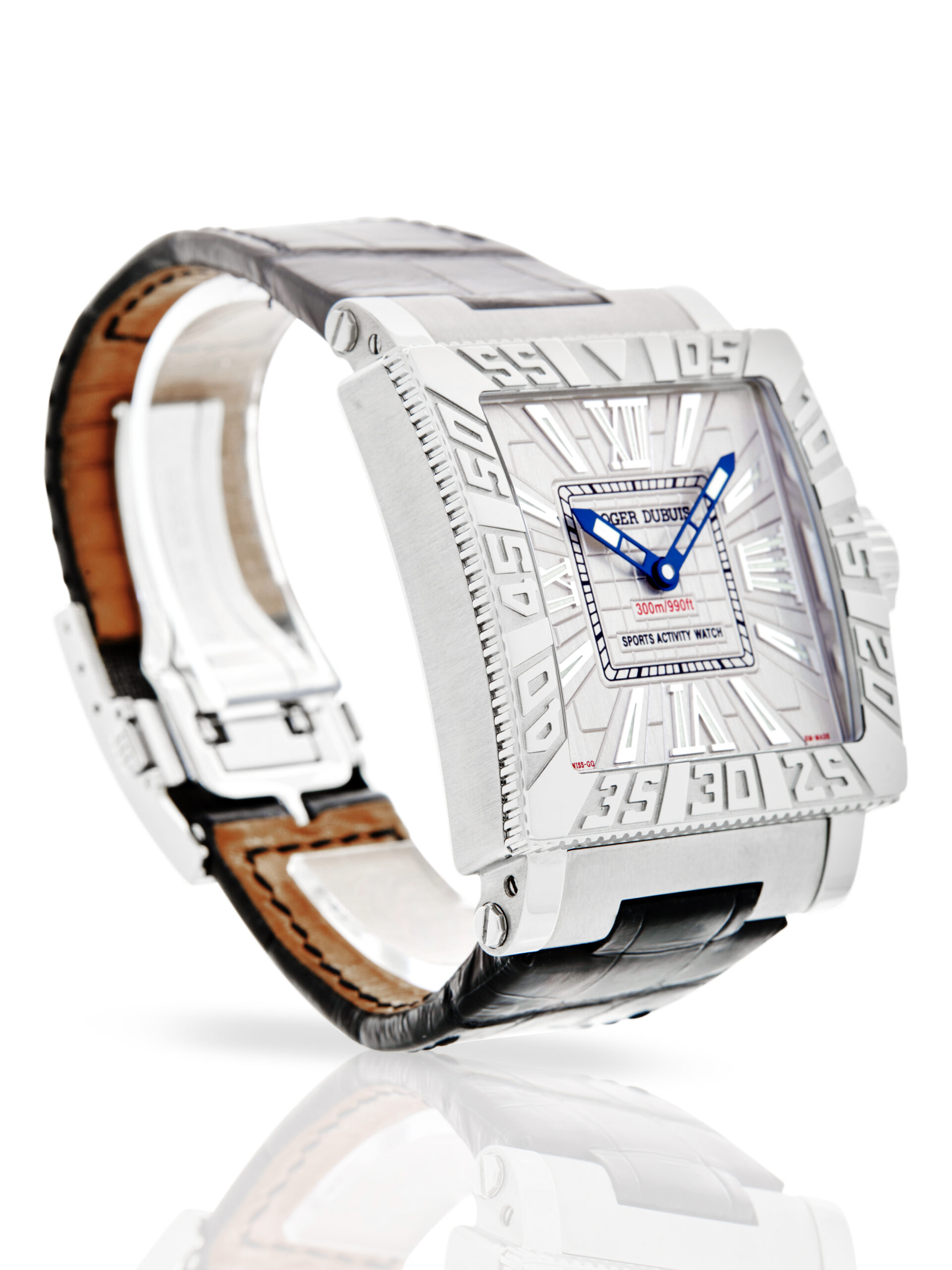 Presented in fantastic condition is this striking example of a 2005 Roger Dubuis Aqua Mare G41 57 9 3.53 ‘Just For Friends’, limited to 888 pieces. The watch features a 41mm stainless steel case, silver embossed dial with Roman numerals, stainless steel bezel with a minute markers and is coupled to a black alligator strap with a folding clasp. Having received a full service by our watchmakers, it’s deemed to be running very well and is showing only very minor signs of wear.
