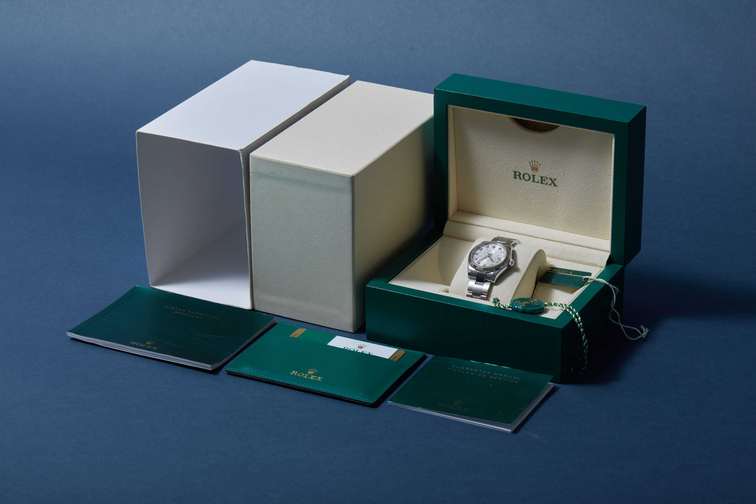 The watch is supplied with its original Rolex box, green leather wallet, manuals, 2x swing tags and warranty card dated Q4 2015 (UK supplied).