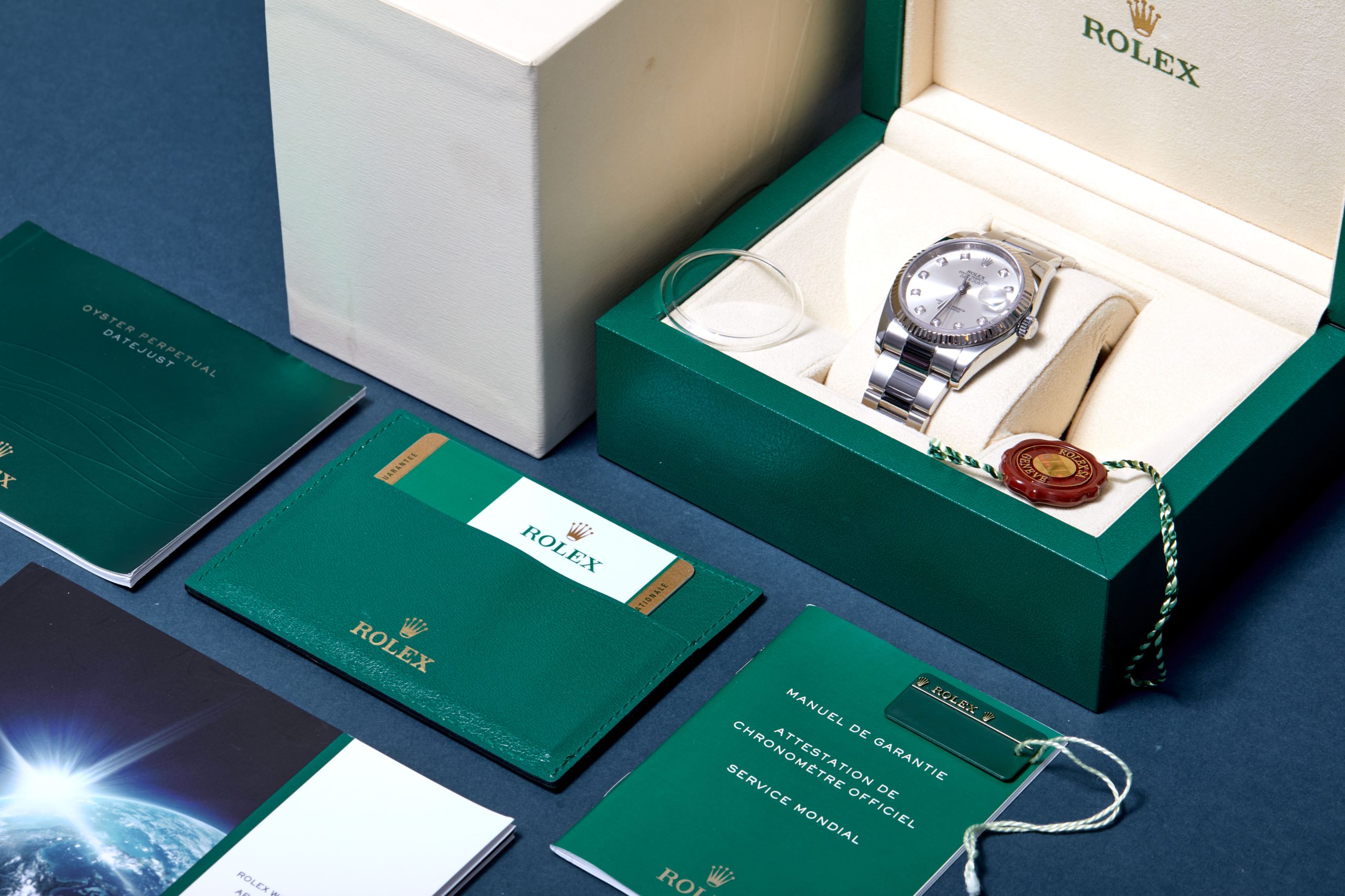 The watch is supplied with its original Rolex box, green leather wallet, manuals, 2x swing tags, bezel protector and warranty card dated Q2 2015 (UK supplied).