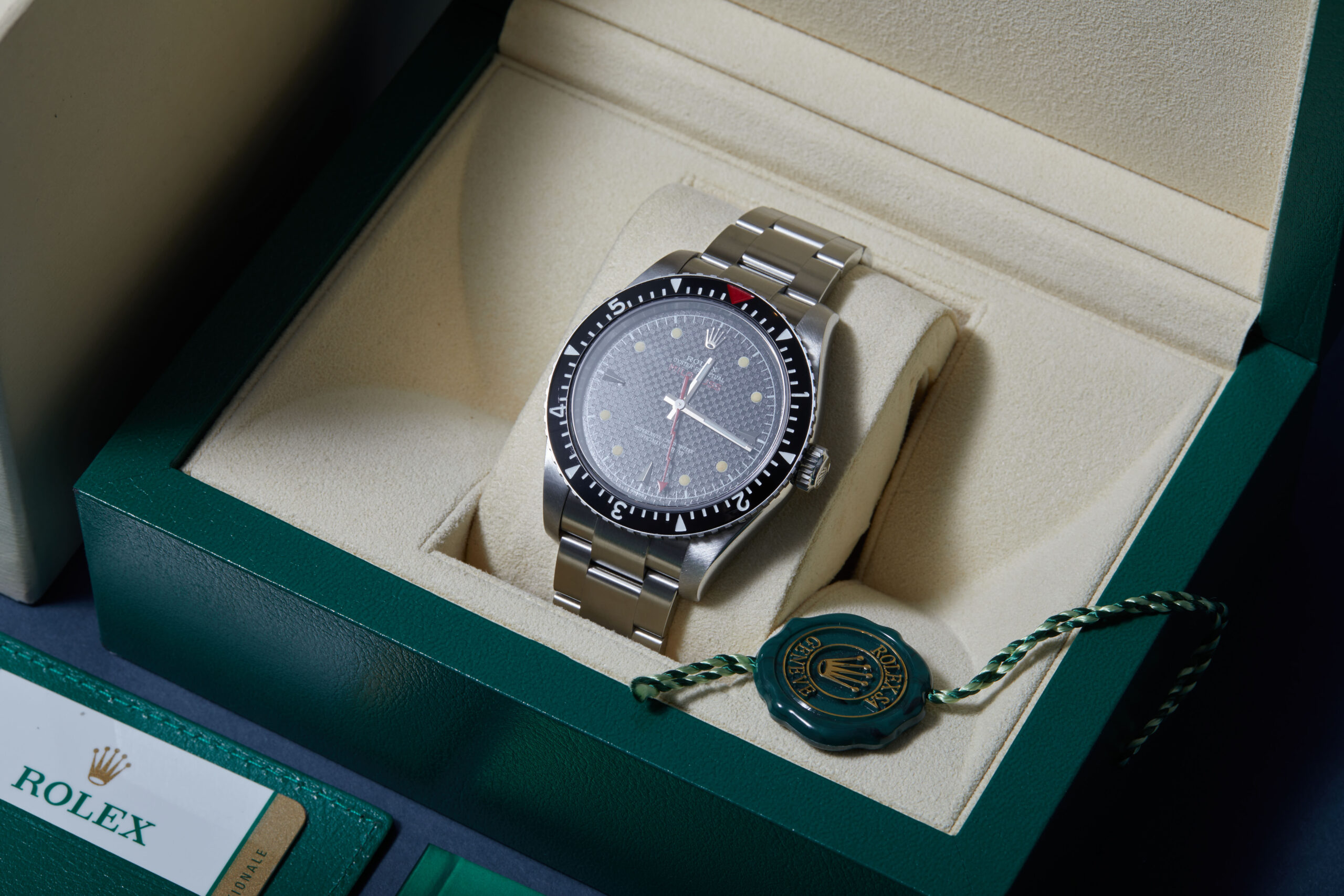 Presented in excellent condition is this stunning example of a 2015 Rolex Milgauss 116400GV ‘Tribute to 6541’, customised by Hercules Watch Co. The watch features a 40mm stainless steel case, black honeycomb dial, red lightning bolt second hand, yellow hour markers, rotating bezel with black insert and is coupled to a stainless steel Oyster bracelet. Having been professionally tested for condition and accuracy, it’s deemed to be running perfectly, ready for its new, very lucky owner.