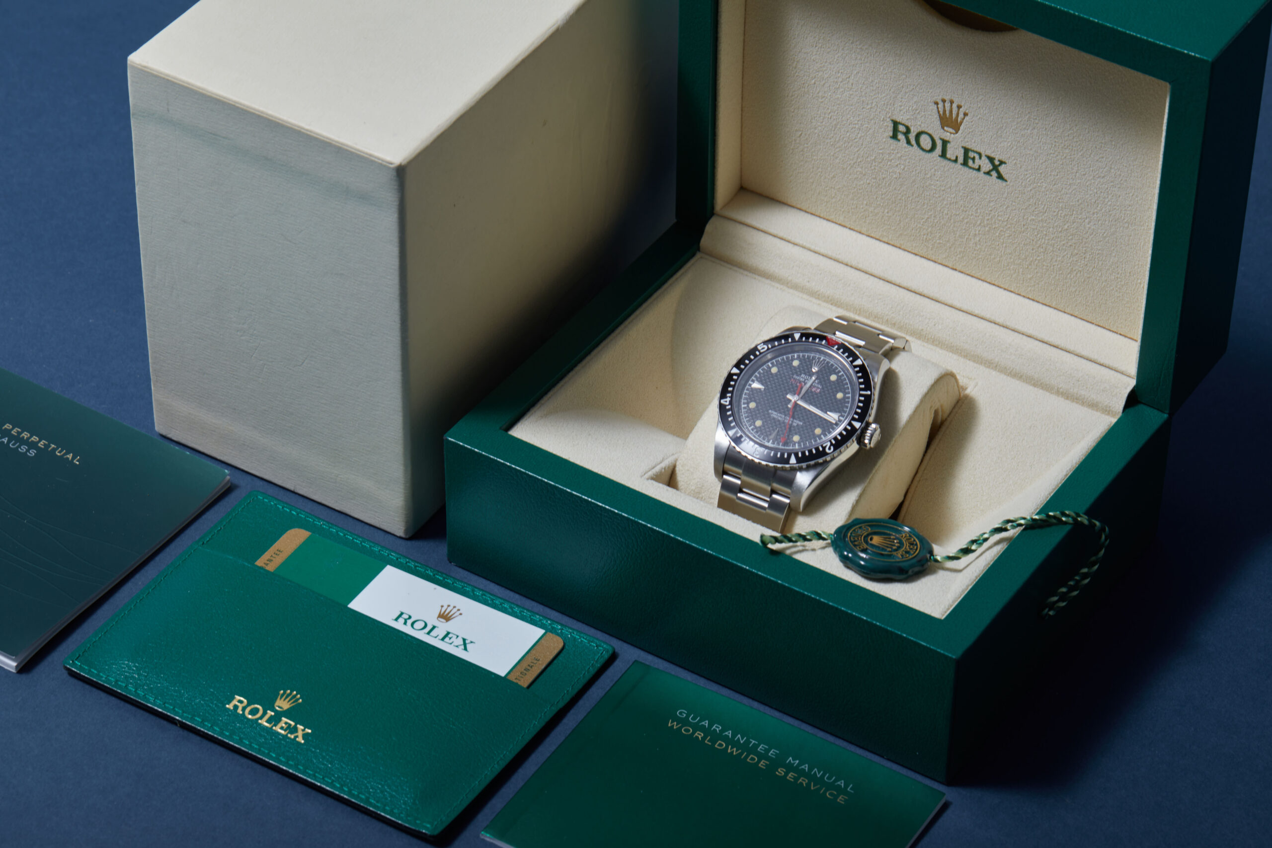 The watch is supplied with its original Rolex box, green leather wallet, manuals, green swing tag and warranty card dated Q3 2015 (UK supplied).