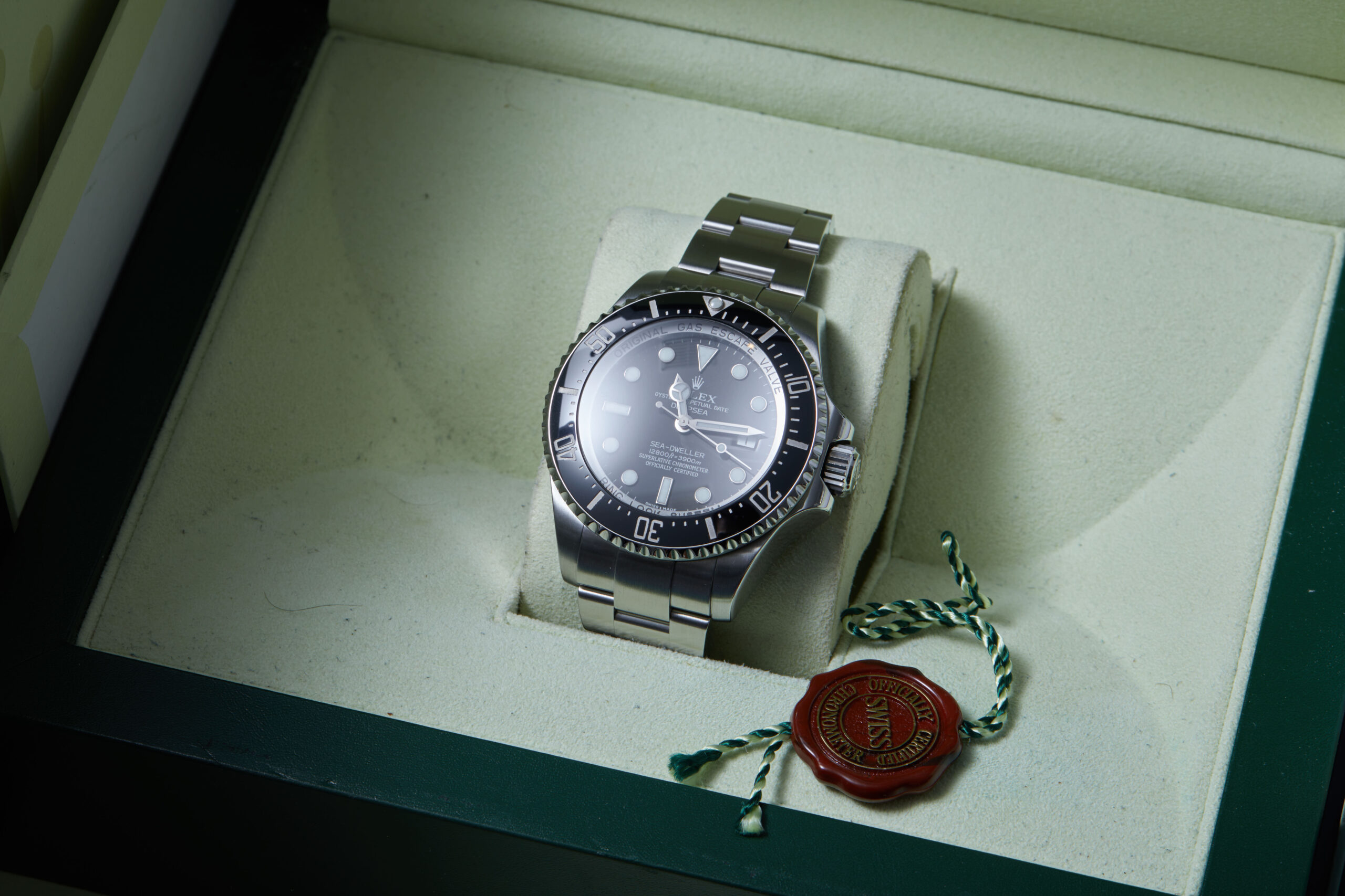 Presented in fantastic condition is this striking example of a 2009 Rolex Sea-Dweller Deepsea 116660. The watch features a 44mm stainless steel case, black dial with luminescent hour markers, stainless steel bezel with black ceramic insert and is coupled to a stainless steel Oyster bracelet. Having been professionally tested for condition and accuracy, it’s deemed to be running very well and is showing only very minor signs of wear.