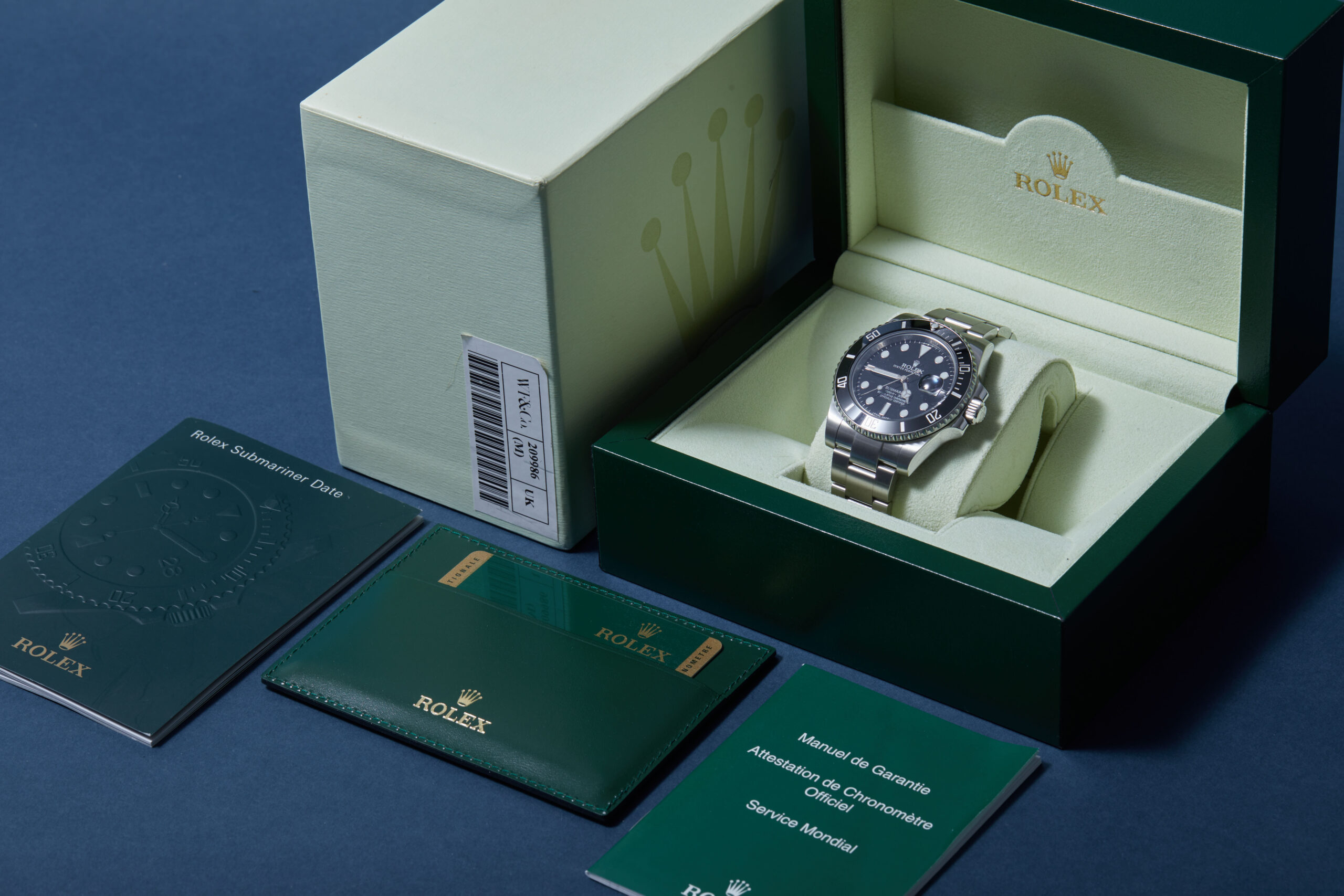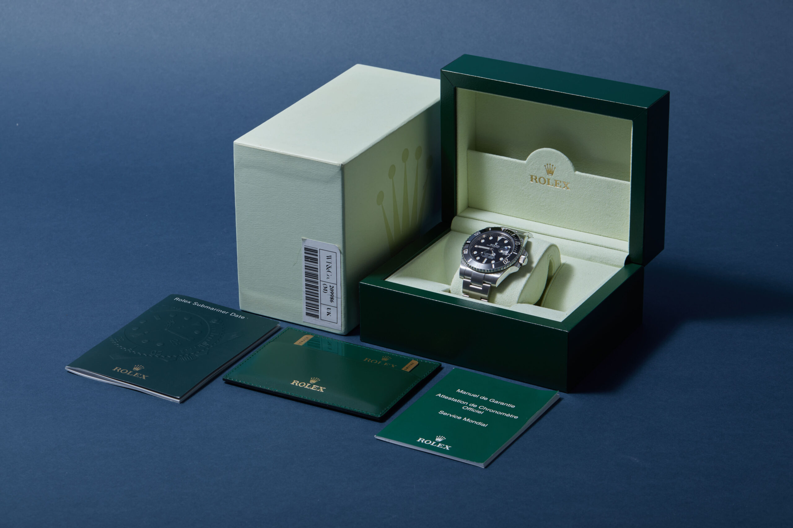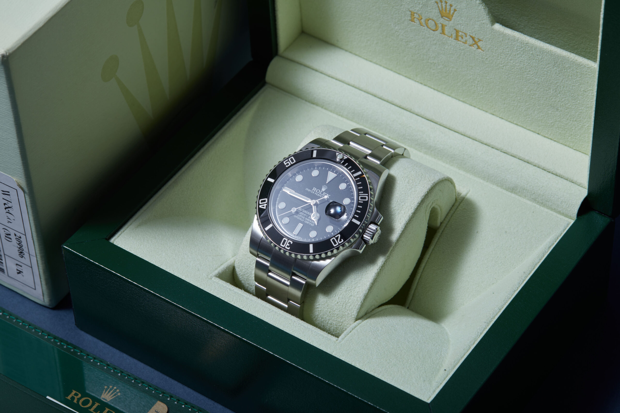 The watch is supplied with its original Rolex box, green leather wallet, manuals and warranty card dated Q1 2012 (Spain).