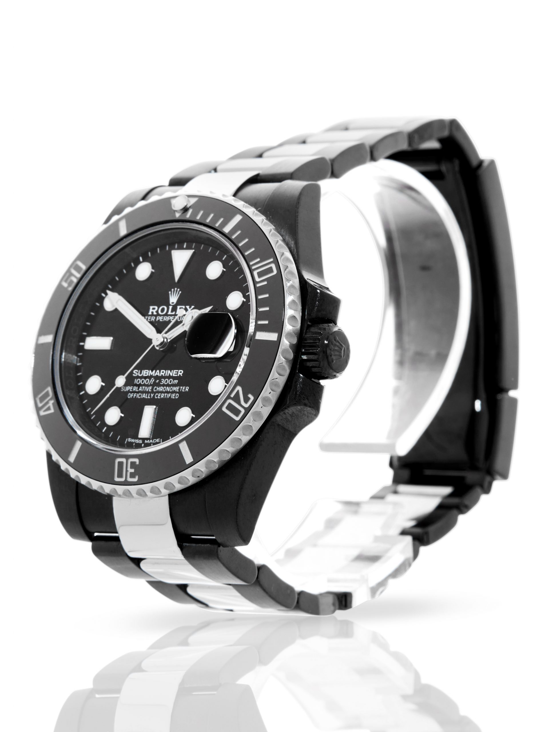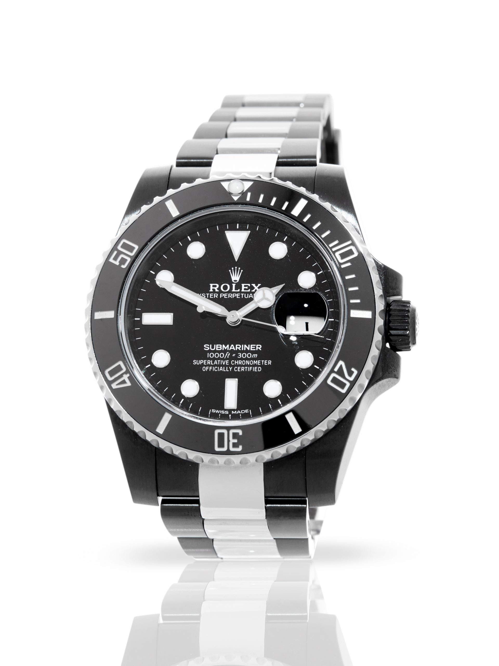 Presented in excellent condition is this outstanding example of a 2019 Rolex Submariner Date 116610LN, customised by Hercules Watch Co. The watch features a 40mm black DLC coated case, black dial with white luminescent hour markers, black DLC coated bezel with black ceramic insert and is coupled to a black DLC coated Oyster bracelet. Having been professionally tested for condition and accuracy, it’s deemed to be running perfectly, ready for its new, very lucky owner.