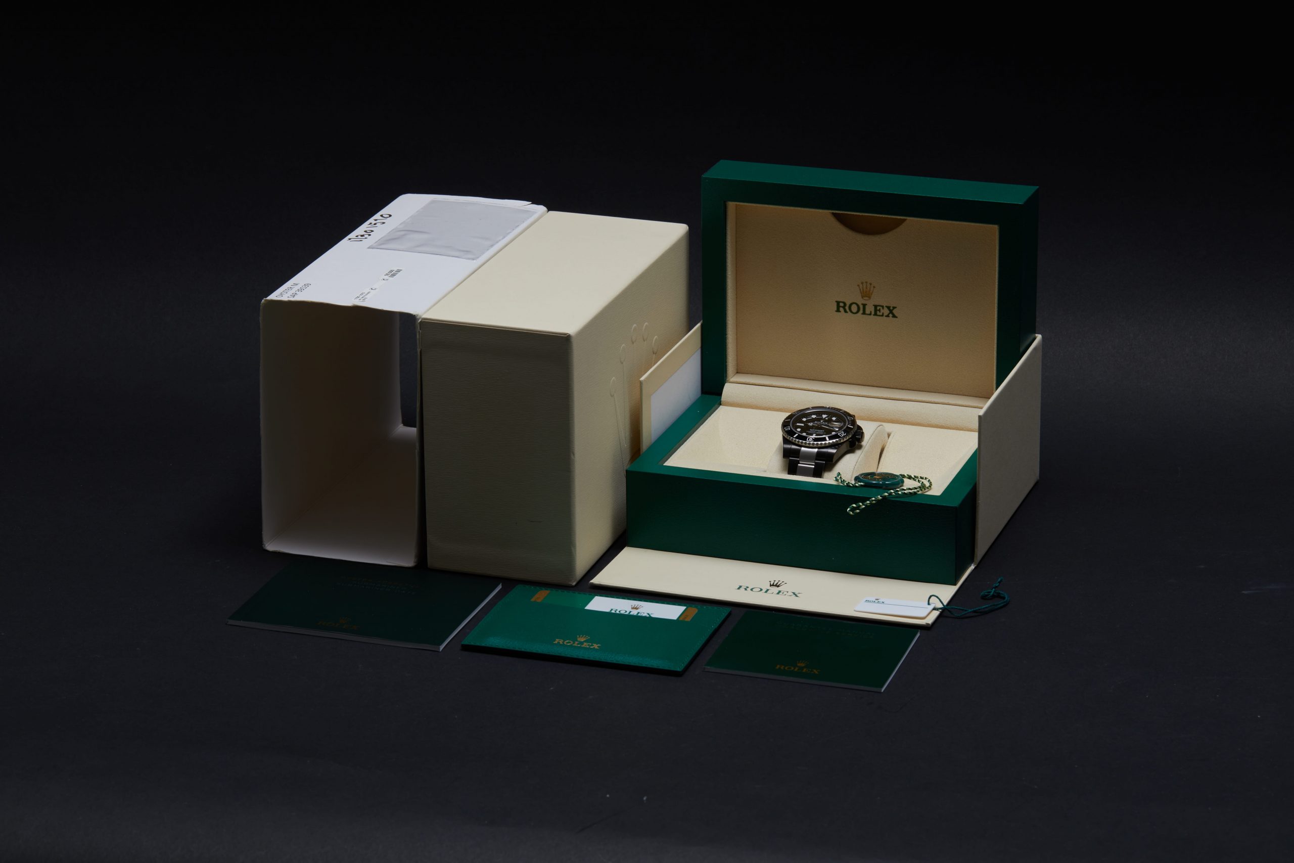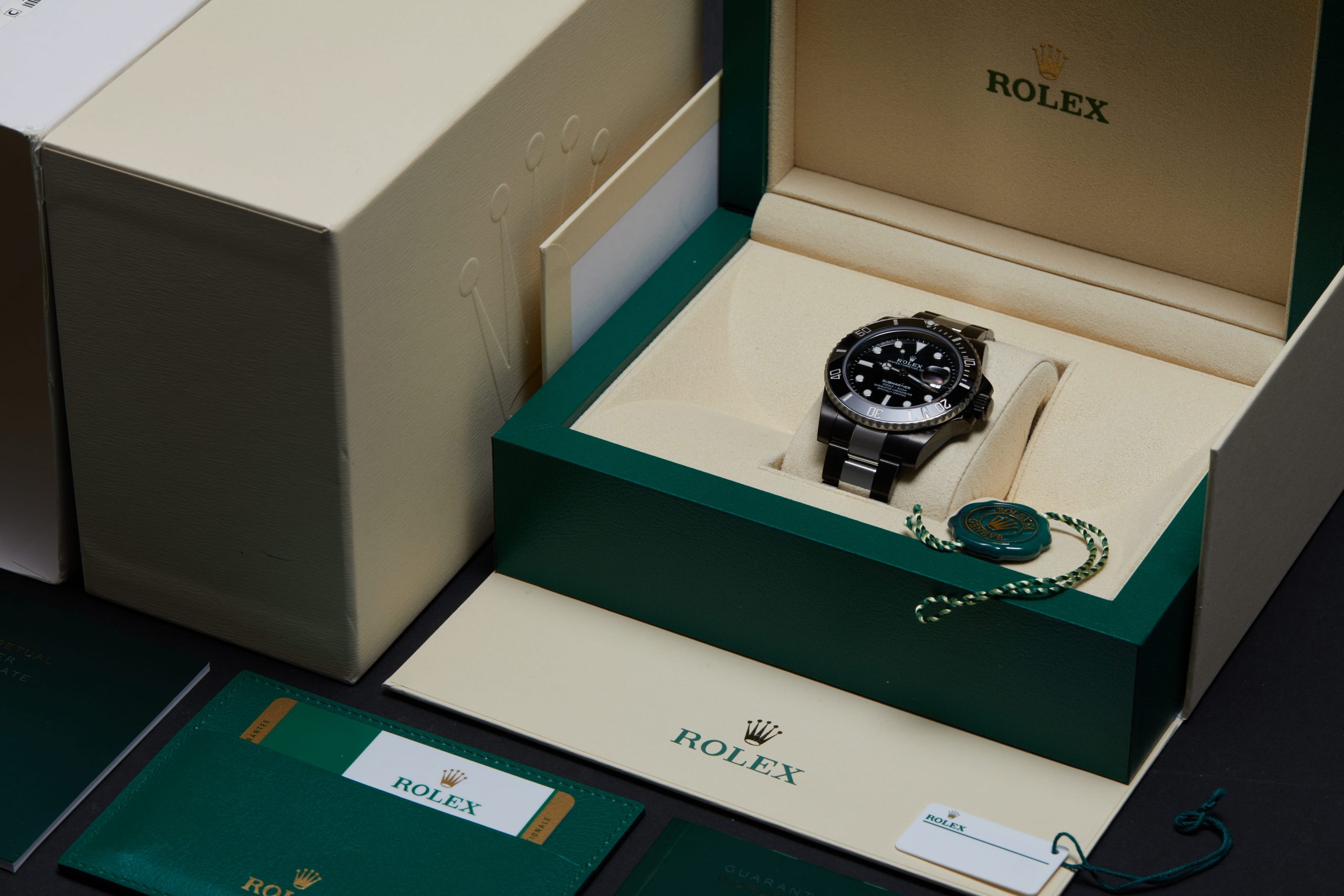 The watch is supplied with its original Rolex box, green leather wallet, manuals, 2x swing tags and warranty card dated Q3 2019 (UK supplied).