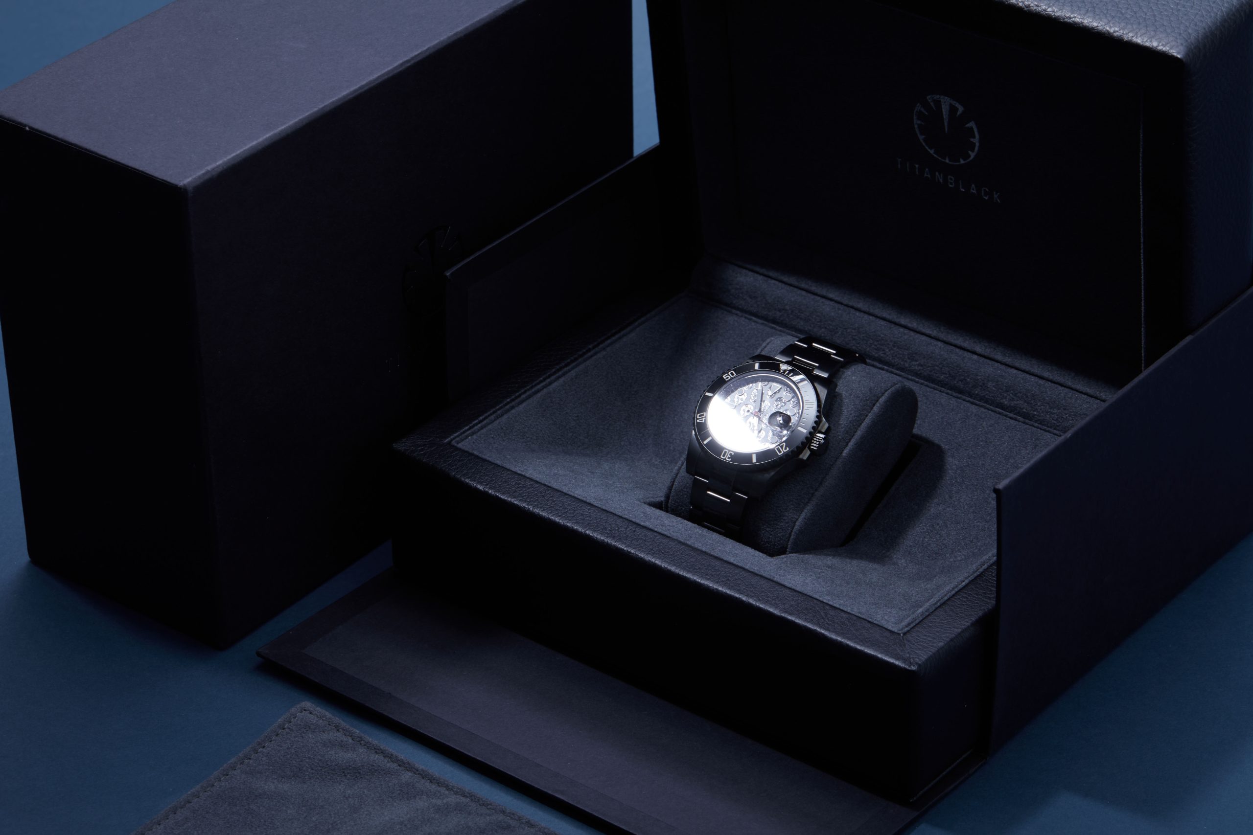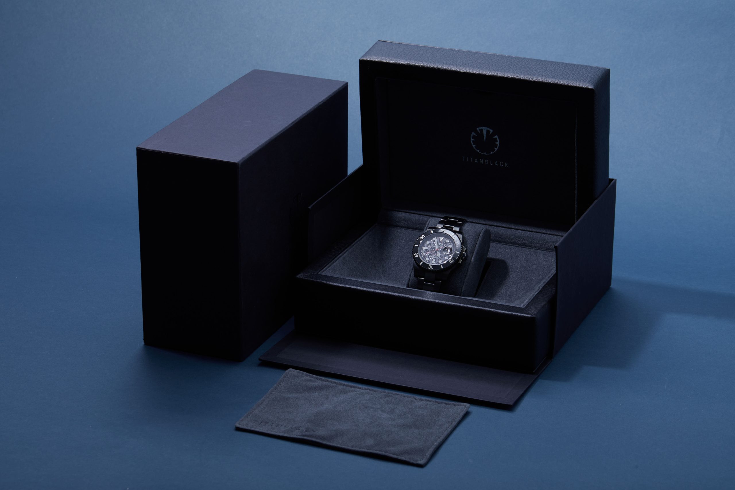 The watch is supplied with a Titan Black presentation box and Titan Black warranty card.