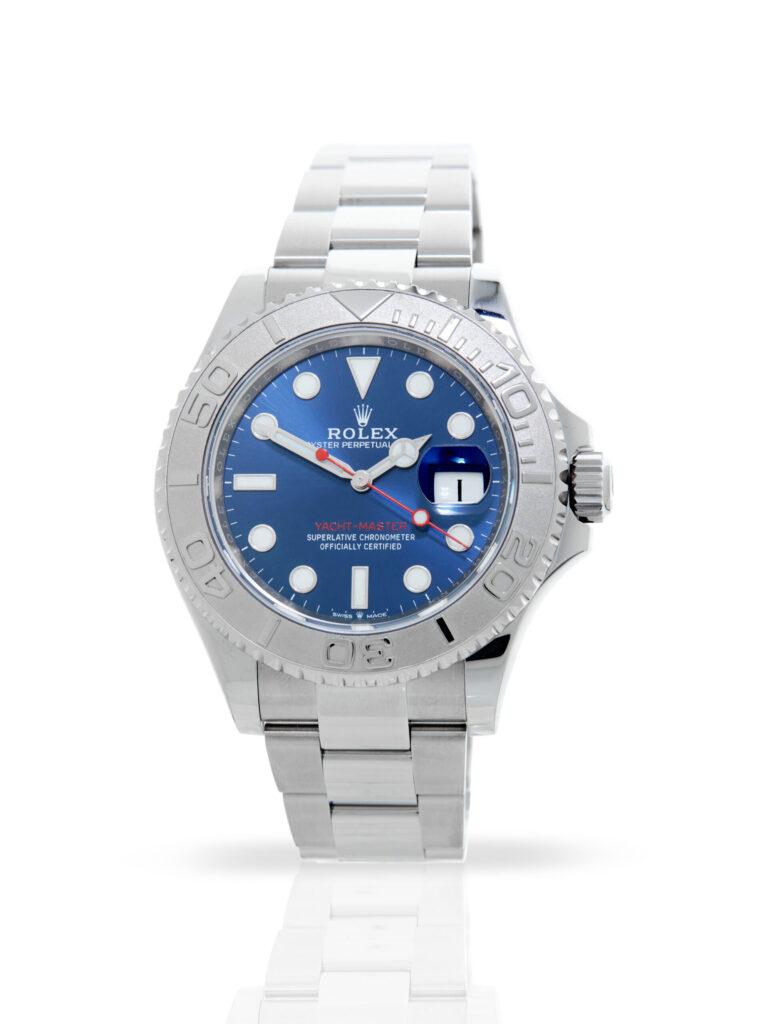Presented in excellent condition is this stunning example of a 2023 Rolex Yacht-Master 40 126622. The watch features a 40mm stainless steel case, blue dial with luminescent hour markers, platinum bezel and is coupled to a stainless steel Oyster bracelet. Having been professionally tested for condition and accuracy, it’s deemed to be running perfectly and is showing barely any signs of wear.