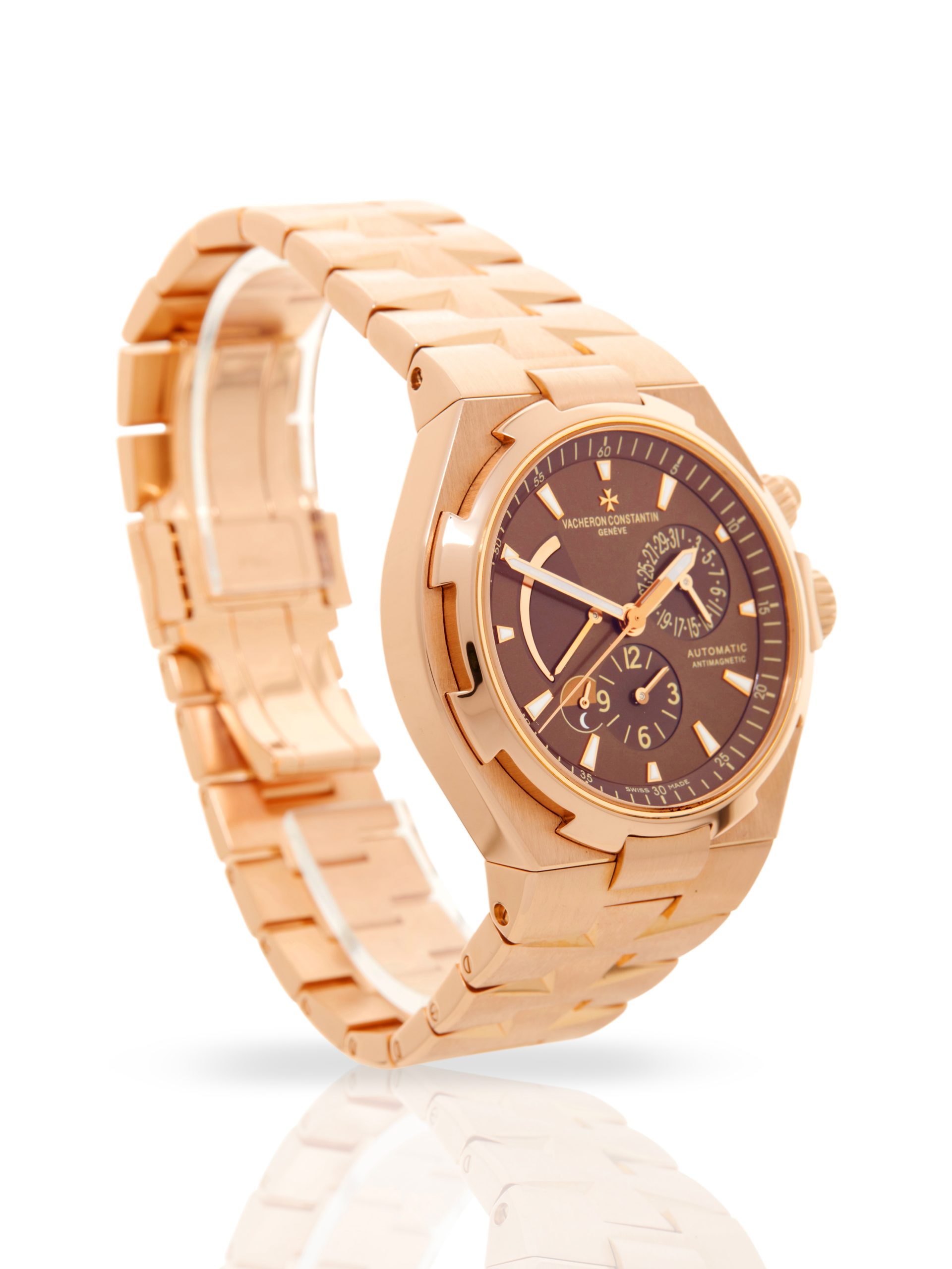 Presented in excellent condition is this beautiful example of a 2006 Vacheron Constantin Overseas Dual Time 47450/B01R-9229, limited to just 250 pieces. The watch features a 42mm 18K rose gold case, brown dial with date display, dual time function, power reserve indicator and is coupled to an 18K rose gold integrated bracelet with a double folding clasp. Having been professionally tested for condition and accuracy, it’s deemed to be running very well and is showing only limited signs of wear.