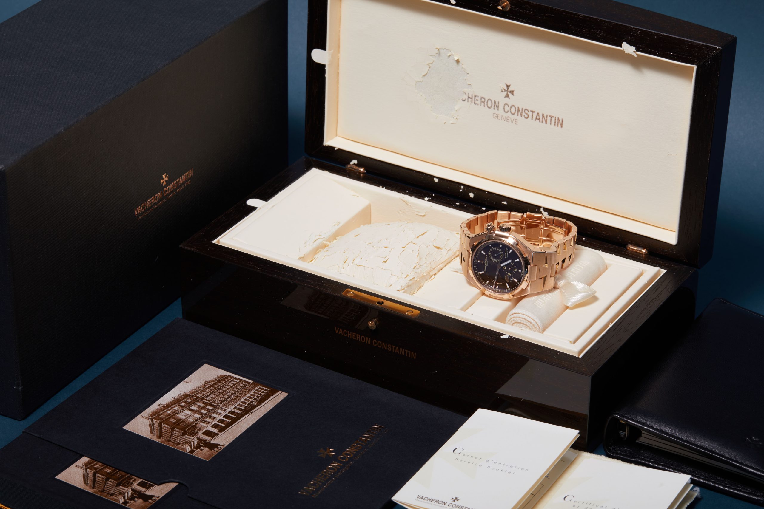 The watch is supplied with its original Vacheron Constantin box (showing age-related wear to leather inside), black leather wallet with service manual, certificate of authenticity, polishing cloth and warranty certificate dated Q4 2006.